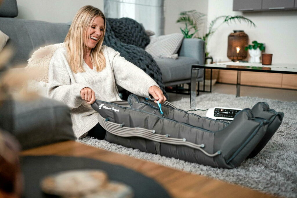 El ritmo de compresión proporciona un tiempo de descanso estructurado. Las sesiones favorecen la relajación, ayudan a liberar el estrés y preparan al cuerpo para recuperarse mejor. Muchas personas incorporan la presoterapia al final del día para relajar las piernas y mejorar su bienestar general, lo que a veces tiene un impacto positivo en la calidad del sueño.
