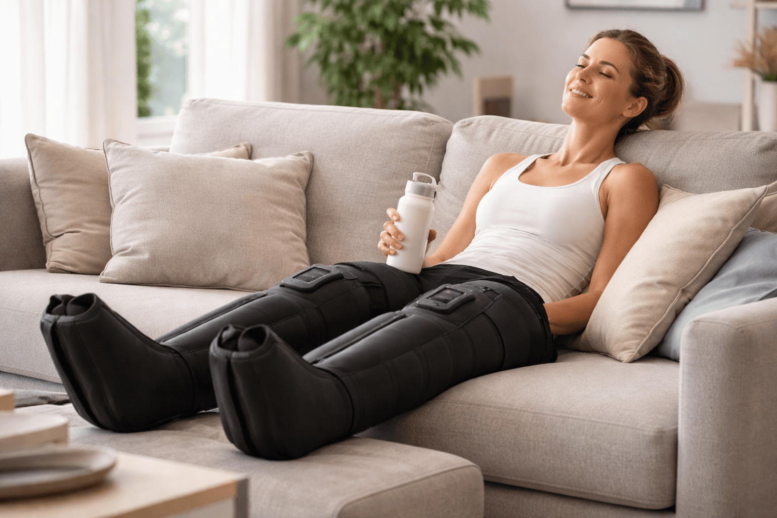 La compresión es progresiva y agradable, sin sensación de dolor ni presión excesiva. Al no haber cables ni mangueras, la experiencia resulta mucho más cómoda que con sistemas de presoterapia tradicionales. Se puede usar sentado o tumbado sin molestias.